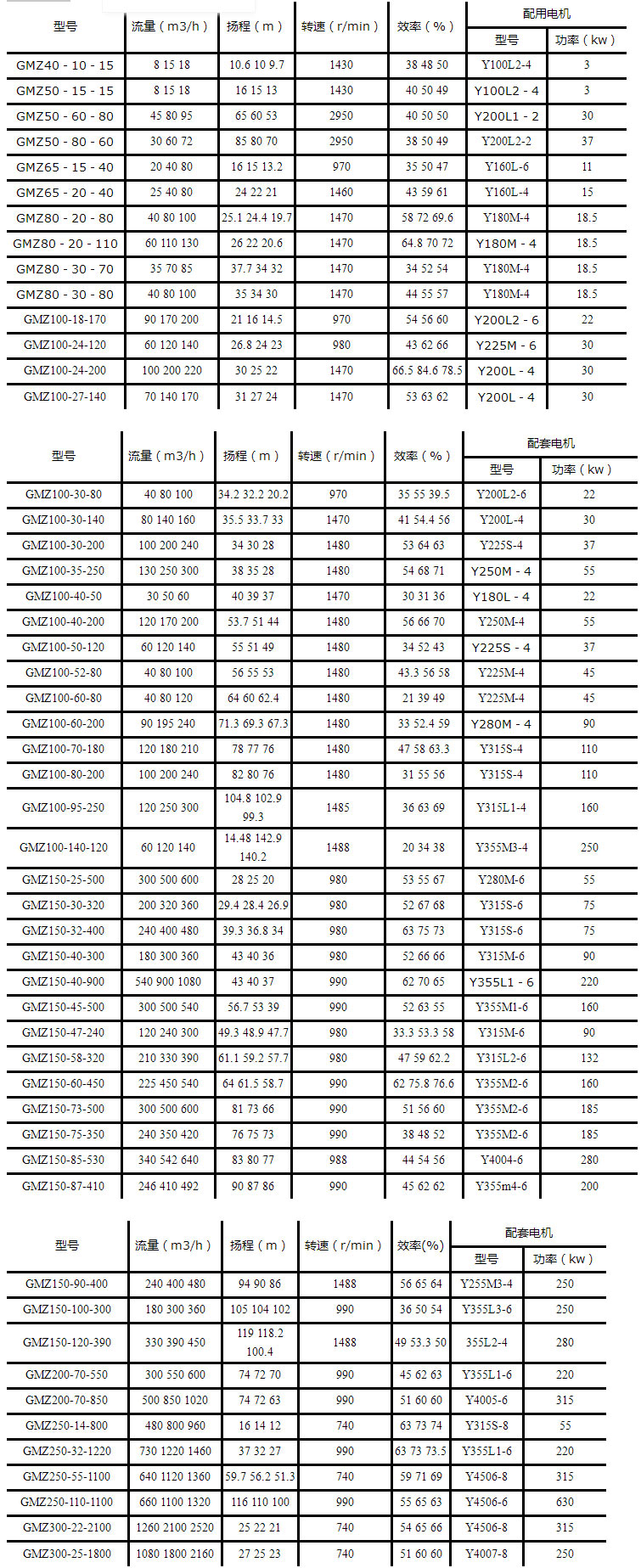 GMZ型渣漿泵(beng)性能範圍: 流量(liàng)8-2600m3/h