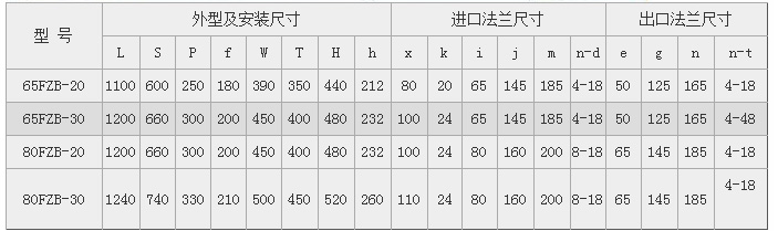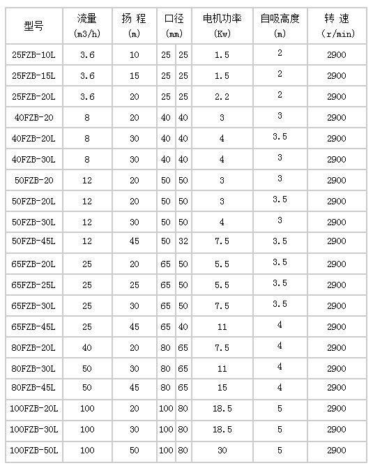 技術參數(shu): FZB型氟塑料自吸化(huà)工泵